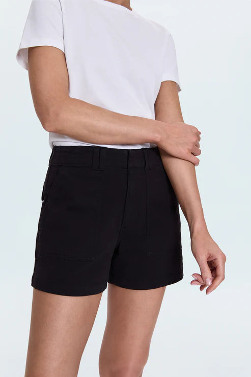 Sharpest tool in the shed. High rise short with a relaxed fit and medium length, crafted from a lightweight stretch fabrication and adorned with utility inspired design notes. Noir is a clean black hue with endless pairing potential.